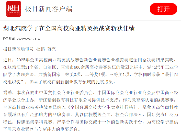 【极目新闻】湖北汽院学子在全国高校商业精英挑战赛斩获佳绩