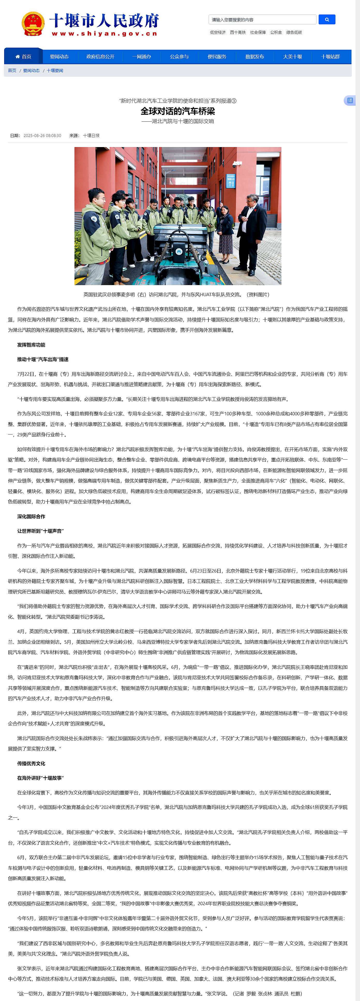 【十堰市人民政府网】全球对话的汽车桥梁——湖北汽院与十堰的国际交响