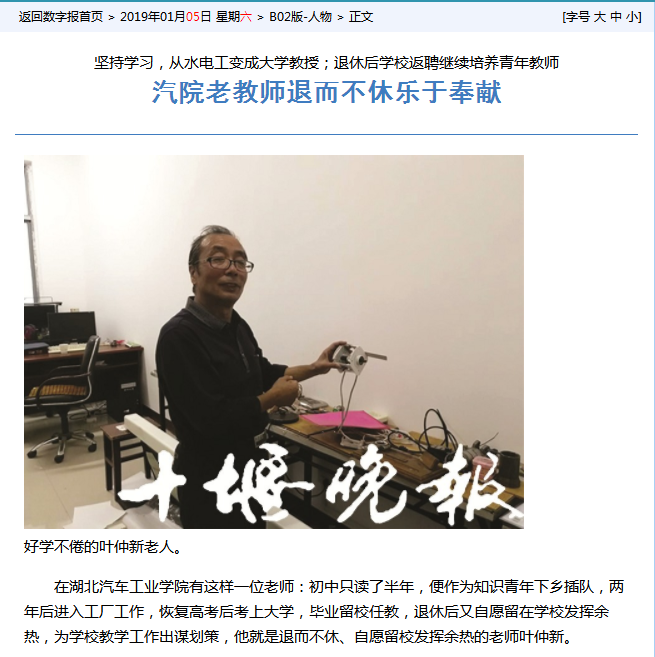 【十堰晚报】汽院老教师退而不休乐于奉献